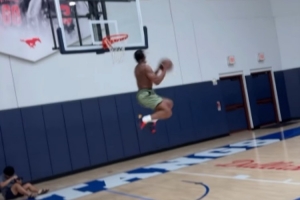 体育资讯9月22日讯 今日,训练师Coachhart更新动态,晒出一段丹尼斯-史密斯的扣篮视频。其中他完成了双手折叠转身暴扣。