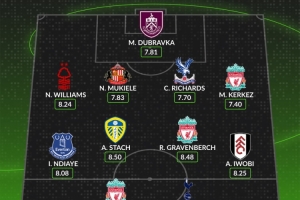 后卫:内科-威廉姆斯(诺丁汉森林)、穆基勒(桑德兰)、理查兹(水晶宫)、科尔克兹(利物浦)