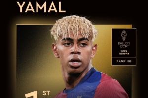 自科帕奖2018年设立以来,巴萨球员已经4次获得该奖项,分别是2021年的佩德里、2022年的加维以及今年、去年的亚马尔。