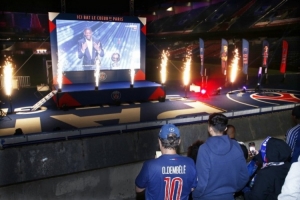 众多巴黎圣日耳曼季票持有者来到王子公园球场,参加球迷之夜活动,观看巴黎圣日耳曼客场对阵马赛的比赛、金球奖颁奖典礼直播。