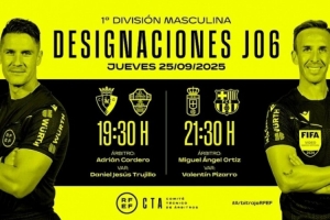 西甲第6轮两场比赛裁判安排: