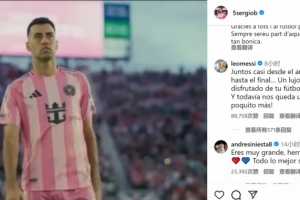 梅西写道:“从开始到结束几乎始终并肩作战……能欣赏你的足球是一种荣幸,布斯克茨。而且我们还有一点时间可以继续。”