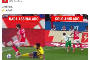 视频中,左边为本场比赛本菲卡丢球前对手疑似犯规的瞬间,配文“无事发生”,右边为上场比赛本菲卡进球被吹前犯规的瞬间,配文“进球无效”。本菲卡官推还配文:“(判罚)标准👉 APAF(葡萄牙裁判协会)”