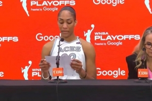 体育资讯9月29日讯 今日WNBA季后赛半决赛G4,拉斯维加斯王牌83-90不敌印第安纳狂热,阿贾赛后接受了媒体采访。