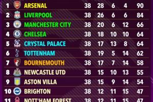 体育资讯09月29日讯 英超第6轮战罢,超级计算机根据各支球队的积分和表现情况,以及球队的阵容,预测了本赛季英超的最终排名。阿森纳将以90分夺得英超冠军,利物浦84分第二,曼城、切尔西进入前四,曼联仅排名英超第15。