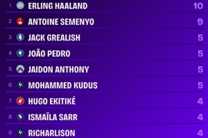 体育资讯10月6日讯 英超第7轮比赛,曼城以1-0的比分小胜布伦特福德。本场比赛,哈兰德打进全场唯一进球,成为本赛季英超首位直接参与10粒进球的球员。