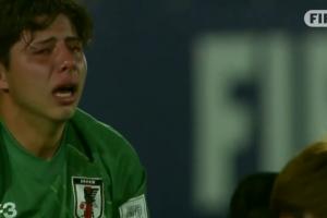 赛后日本U20球员躺倒一片,日本队包括门将在内许多球员都泪洒球场。