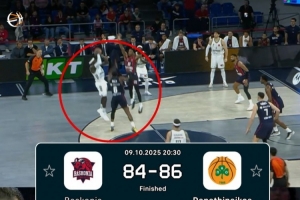 体育资讯10月10日讯 在今天凌晨的欧篮联比赛中,帕纳辛纳科斯86-84击败巴斯克尼亚,纳恩在最后时刻完成了压哨绝杀,帮助球队2分险胜。