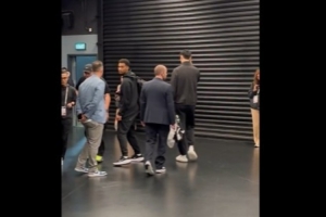 赛后我下到混采区的时候,曾凡博已经一边打电话一边走出通道去大巴了。我还以为篮网球员都走了,结果后面跟着的全是太阳球员,10来分钟之后,篮网球员才陆续拖着大包小包走出来。