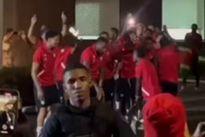 巴拿马球迷昨晚在苏里南队下榻的酒店外面放音乐,试图打扰苏里南球员休息,苏里南球员来到酒店楼下,随着音乐跳舞,并挥舞国旗。