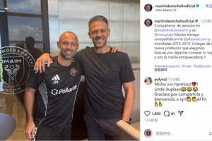 德米凯利斯造访迈阿密国际俱乐部,并与迈阿密国际主帅、昔日队友马斯切拉诺合影,他在社交媒体上晒出合照,配文:“我在切萨里尼(河床青训)和河床的室友,我们不仅在2010年、2014年世界杯上为阿根廷并肩作战,如今更成为教练同行。感谢你让我领略你现在的天地,这次交流令我受益良多。”