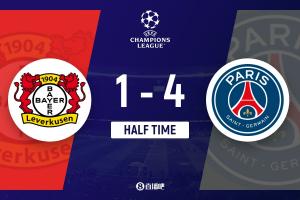 体育资讯10月22日讯 北京时间10月22日凌晨3时,欧冠联赛阶段第3轮,巴黎做客拜耳竞技场对阵勒沃库森。上半场,帕乔首开纪录,随后扎巴尔尼送点,格里马尔多罚丢点球,安德里希肘击犯规被红牌罚下,随后扎巴尔尼犯规领到红点套餐,阿莱克斯-加西亚点射扳平,杜埃双响、克瓦拉茨赫利亚传射。半场战罢,巴黎暂4-1领先勒沃库森。