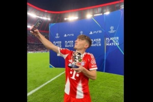 值得一提的是,这是他生涯首次在欧冠首发,打进了欧冠处子球、成为拜仁队史最年轻欧冠进球者,也在首次在赛后被欧冠官方评为全场最佳球员。