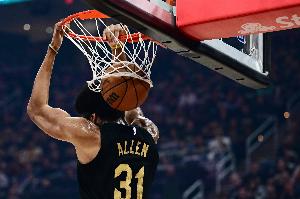 米切尔35分阿伦22+6托马斯33+9骑士拒翻盘险胜篮网