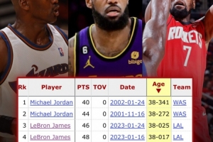 据统计,杜兰特加入了詹姆斯(3次)和乔丹(2次)的行列,成为NBA历史上仅有的三位在37岁或以上年龄单场比赛得到至少37分且没有失误的球员之一。