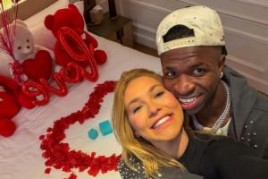 体育资讯10月28日讯 皇马边锋维尼修斯近期陷入国家德比被换下时情绪爆发的争议中,但他在情场上可谓春风得意:他在社媒晒出与女友弗吉尼亚的甜蜜合照,为女友营造了浪漫的鲜花氛围。