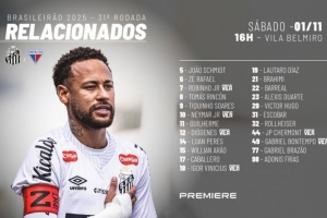 桑托斯公布了此役的球员名单,内马尔回归,这位33岁的巴西前锋此前因肌肉受伤连续缺席7轮联赛。
