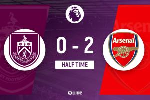 上半场伤停补时2分钟,半场结束,阿森纳暂2-0伯恩利。