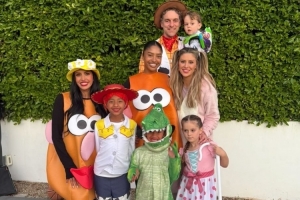 体育资讯11月3日讯 今日科比的妻子瓦妮莎更新IG晒出全家万圣节装扮。