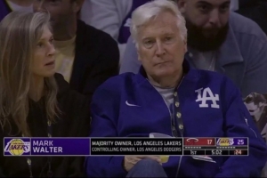 新老板马克-沃尔特现场观战湖人 昨天他的道奇世界大赛两连冠