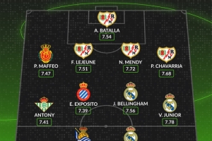 后卫:马菲奥(马洛卡)、弗洛里安·勒热纳(巴列卡诺)、诺贝尔-门迪(巴列卡诺)、佩普-查瓦利亚(巴列卡诺)