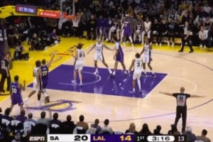 GIF-东契奇单打奥利尼克出手打进,但裁判吹提前犯规