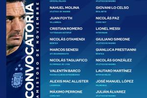 阿根廷大名单:鲁利、贝尼特斯、莫利纳、胡安·弗伊斯、罗梅罗、奥塔门迪、塞内西、塔利亚菲科、巴尔科、麦卡利斯特、佩罗内、德-保罗、恩佐·费尔南德斯、阿尔马达、洛赛尔索、尼科·帕斯、梅西、朱利亚诺·西蒙尼、普雷斯蒂安尼、尼古拉斯·冈萨雷斯、何塞·洛佩斯、阿尔瓦雷斯、帕尼切利