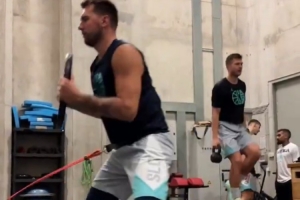 体育资讯8月8日讯 据斯洛文尼亚篮协官媒的视频显示,东契奇正在健身房刻苦训练,备战欧锦赛。