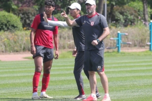 8月24日,“南岭”再迎保级决战,积分相差5分的长春亚泰与深圳新鹏城将在这里进行一场重量级的保级决战。为了打好这场决战,亚泰将士在主帅苏亚雷斯的率领下潜心备战,一方面分析对手近期比赛视频,制定针对强的战术安排。一方面对球员进行心理辅导,提升士气,稳定军心,做好全力出击生死战。