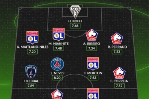 后卫:奈尔斯(里昂,7.20分)、穆萨-尼亚卡特(里昂,7.48分)、亚历山德罗-里贝罗(里尔,7.34分)、罗曼-佩罗(里尔,7.33分)