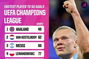 体育资讯9月19日讯 欧冠联赛阶段第1轮,曼城主场2比0击败那不勒斯。其中哈兰德打进1球,这也是他个人欧冠50球,仅49场即达成此成就。