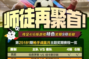第25181期传足4/6场游戏特色奖期已经于2025年9月17日20:00开售,将于2025年9月21日20:30停售,并于9月22日开奖,其中伯恩茅斯VS纽卡斯尔联、阿森纳VS曼彻斯特城、勒沃库森VS门兴格拉德巴赫、多特蒙德VS沃尔夫斯堡为4场进球游戏竞猜赛事。