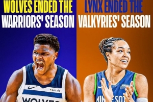 如此一来,明尼苏达今年有两支球队都在季后赛中淘汰了金州的球队,上赛季NBA季后赛,森林狼4比1淘汰了勇士。